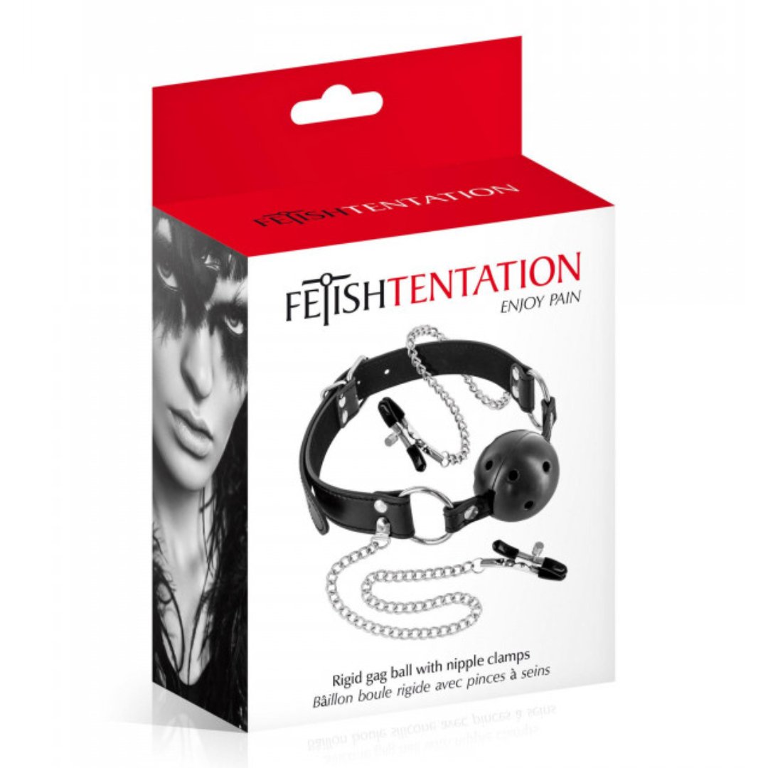 Kugla za usta je izrađena od kvalitetnog materijala koji je prijatno komforan za nošenje i lako se održava. Na svom podesivom kaišu, koji se može prilagoditi od 42 cm do 58 cm, pričvršćeni su metalni lanci koji se završavaju sa štipaljkama za bradavice. Ove štipaljke savršeno pritisnu bradavice, dodajući intenzivan užitak kroz bol koji uzbuđuje.