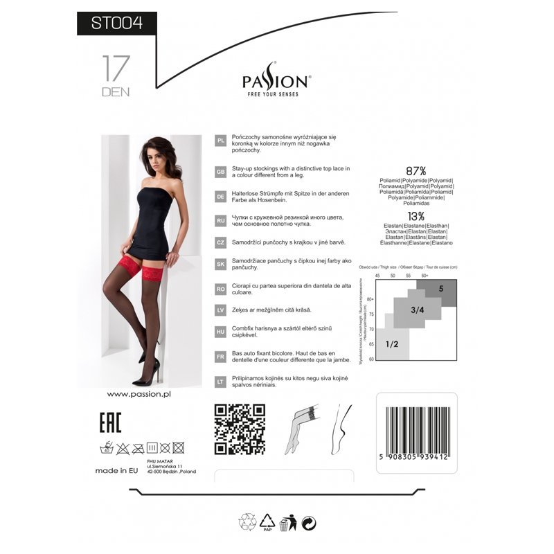 Posebnu notu senzualnosti daje široki crni čipkasti rub, koji pruža luksuzan izgled i dodatnu eleganciju. Na unutrašnjoj strani čarapa nalaze se tri silikonske trake, koje osiguravaju stabilnost i sprečavaju klizanje, omogućavajući vam da ih nosite bez haltera uz maksimalnu sigurnost. Takođe, dizajnirane su tako da se mogu kombinovati sa halterima, ukoliko želite još izazovniji izgled.