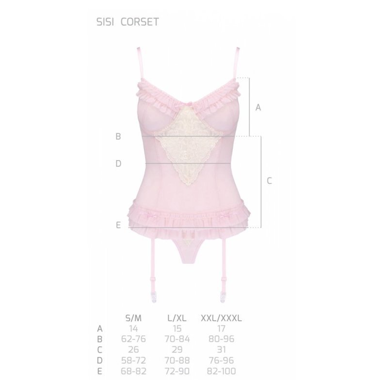 Elegantni korset – Sisi u roze boji napravljen je od mekog tila i delikatne čipke. Elastični materijal savršeno se prilagođava, uz njega dobijate i tange.