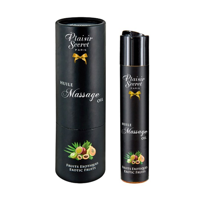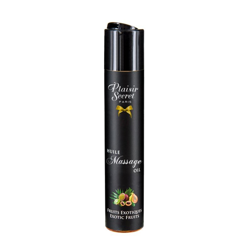 Erotsko ulje za masažu – Egzotično voće iz kolekcije Plaisir Secret donosi vrhunski užitak i senzualno iskustvo kroz savršenu kombinaciju prirodnih sastojaka i zavodljivih mirisa. Ovo luksuzno ulje napravljeno je od 100% prirodnih biljnih ulja, pažljivo biranih kako bi negovalo kožu, ostavljajući je svilenkastom, hidriranom i nežnom više od 24 sata. Njegova nemasna formula lako se upija, ne ostavljajući lepljiv trag, što ga čini idealnim za duge, opuštajuće i strastvene masaže.
