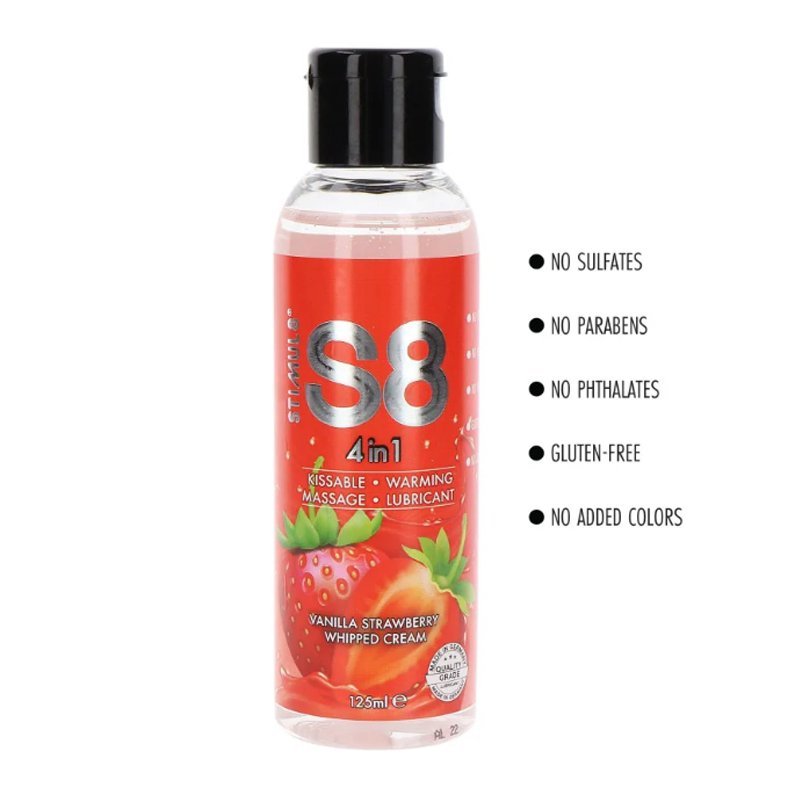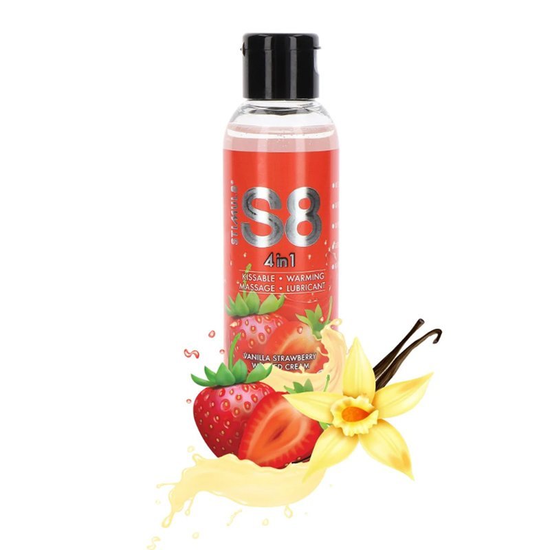 Lubrikant S8 4 u 1 – vanila, jagoda, šlag može se koristiti kao klizajući lubrikant, nežno masažno ulje, ukusna poslastica tokom ljubljenja ili ulje koje zagreva erogene zone i pojačava osećaj uzbuđenja.