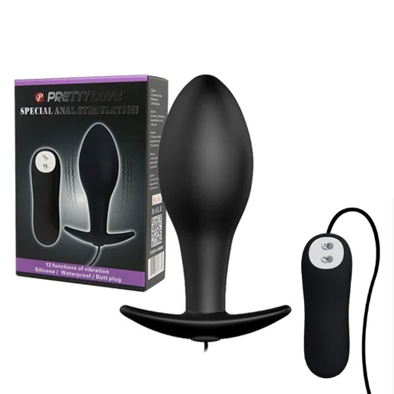 Analni plug sa vibracijom – Pretty Love 1 je zaobljeni silikonski plug sa 12 funkcija vibracije i daljinskim upravljačem na kabl, idealan za preciznu, udobnu i intenzivnu analnu stimulaciju.