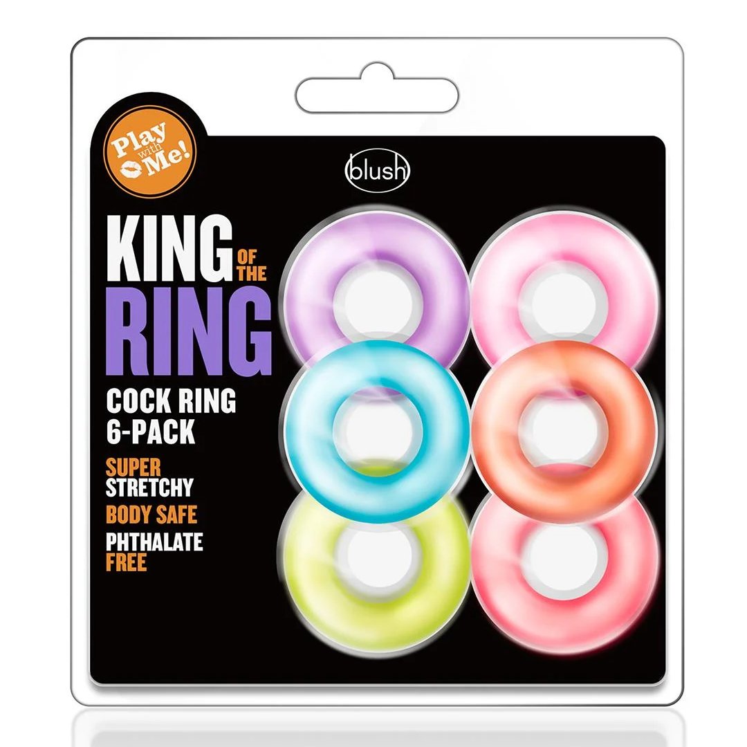 Set od 6 prstenova – King of the Ring pruža jaču erekciju i bolju kontrolu. Super rastegljivi, body-safe i bez ftalata, prečnika 3,5 cm.