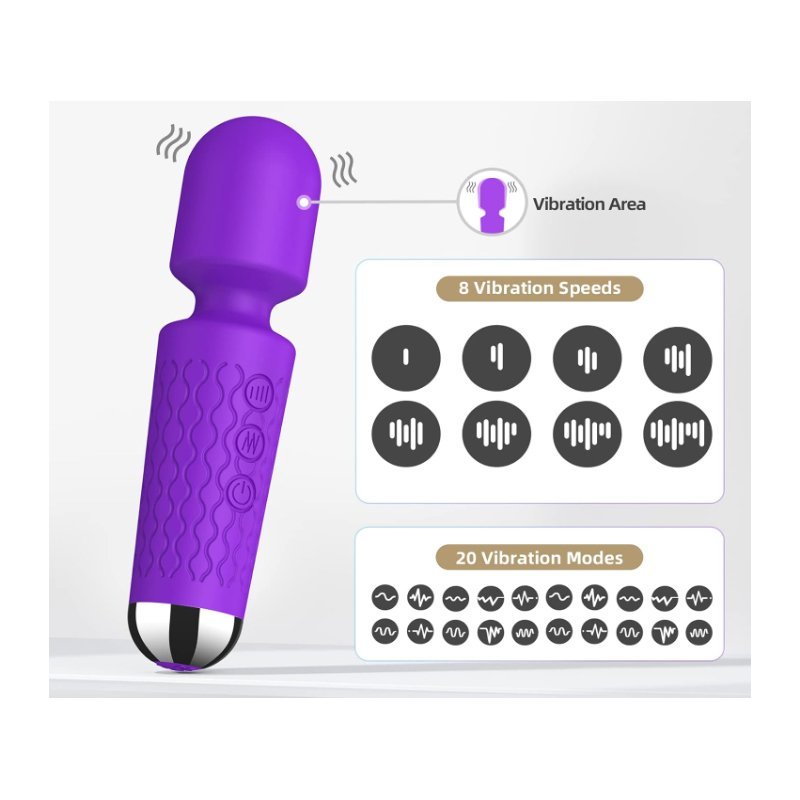 Klitoralni vibrator – mini Wand USB ljubičasti savršen je spoj opuštajućih masaža i intenzivnog erotskog zadovoljstva sa 8 brzina i 20 različitih modova vibracija.