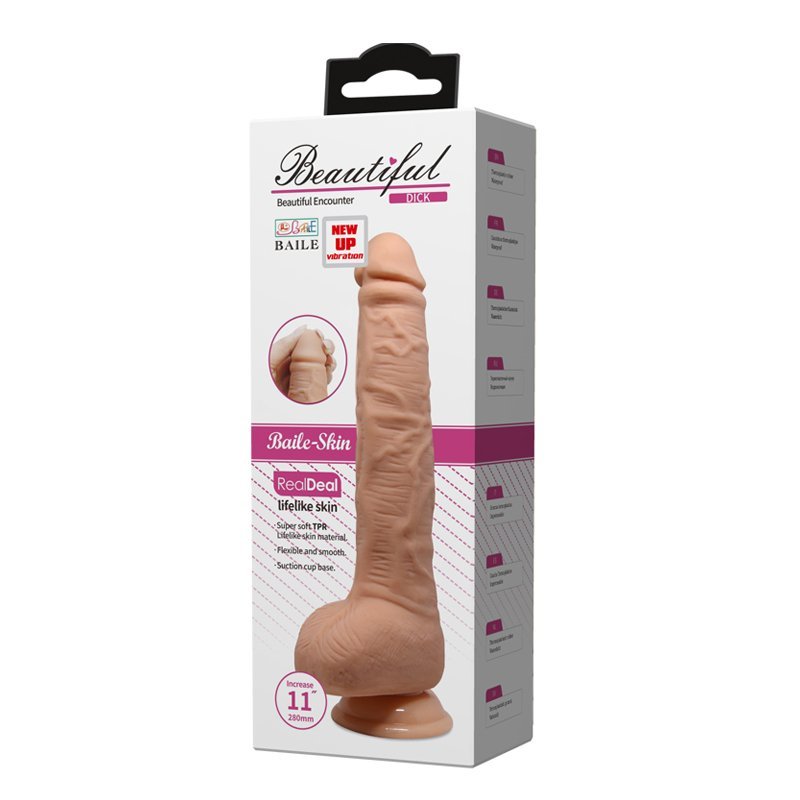 Vibrator – Beautiful Dick 27 cm je realistična seks igračka od mekanog medicinskog silikona, sa izraženim venama, testisima, vibracijom i vakuum bazom. Idealan za duboku vaginalnu i analnu penetraciju.